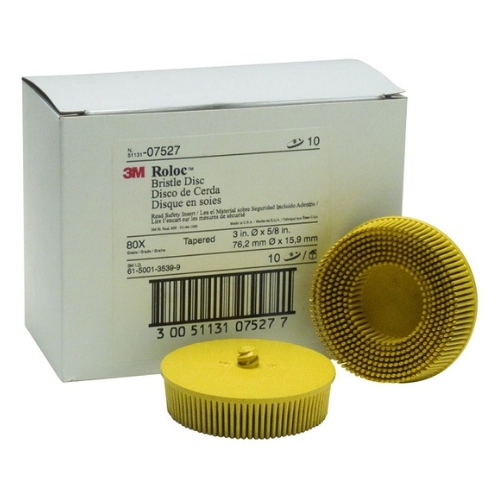 - The 3M 07527 Roloc Bristle Disc can also be referred to as 3 in bristle disc, 80 grit bristle disc, yellow Roloc disc, coating removal bristle disc, and surface conditioning bristle brush.