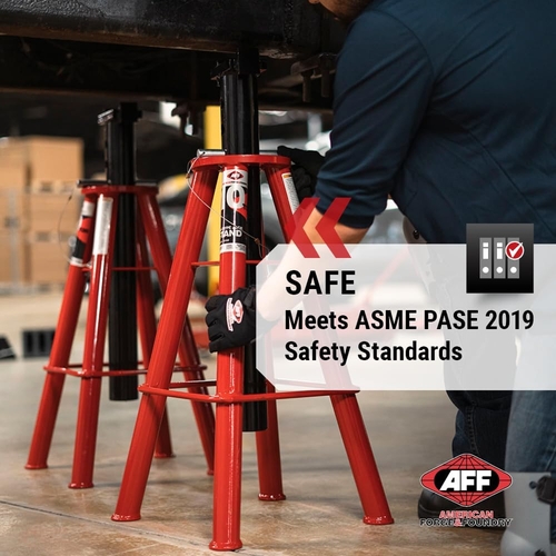 American Forge & Foundry manufactures the 3310B Jack Stand Set to provide high-strength, adjustable support for trucks, trailers, and equipment. With a wide base, pin-type locking system, and ASME-certified design, these stands deliver safety and stability in professional fleet and service environments.