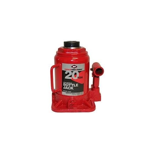- American Forge & Foundry 3522 Bottle Jack is a manual, short-body hydraulic jack with 20 Ton capacity. It features centered pumps and ram with heat-treated piston for balance, a machine hardened steel saddle, and compact base for use in tight spaces.