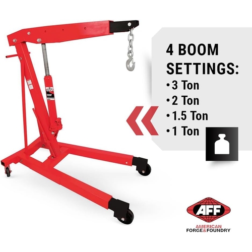 - Manufacturer American Forge & Foundry, Part Number 3584, Engine Crane, Key Specifics manual hydraulic, 3 Ton capacity, four boom positions with varying reach and height