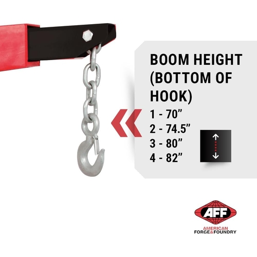 - Four boom settings (3 Ton, 2 Ton, 1.5 Ton, 1 Ton) allow flexibility in reach and lift without changing equipment.