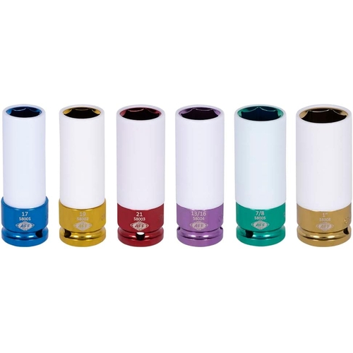 - Manufacturer American Forge & Foundry, Part Number 58007, Impact Socket Set, Key Specifics 1/2-inch drive, 7-piece thin-wall mag wheel sockets with protective sleeves and color-coded sizes