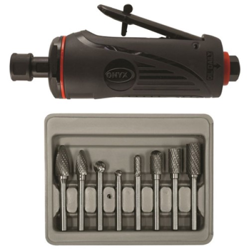 - Item Description: ONYX 2181B Die Grinder Kit with 1/4″ Medium Die Grinder and 8pc. Double Cut Carbide Rotary Burr Set