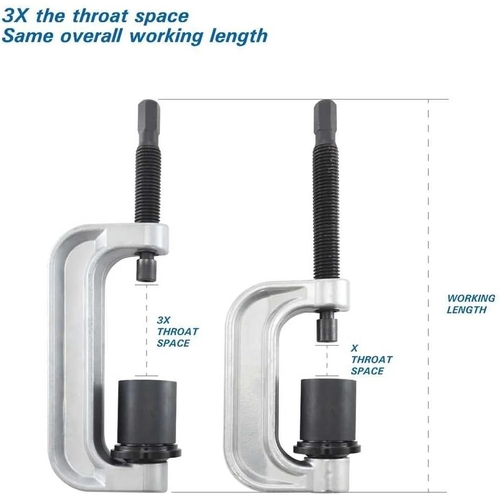 - The Astro Pneumatic 78100 Goliath XL C-Frame Press is a professional-grade solution designed to service virtually all press-fit ball joints, U-joints, and brake anchor pins on most vehicles. Built with a massive, forged C-frame and extended reach, this tool offers unmatched strength and flexibility for tackling large suspension components, especially on trucks and SUVs. Ideal for both DIY enthusiasts and professional technicians, this kit makes joint servicing faster and easier, without removing the control arm.
