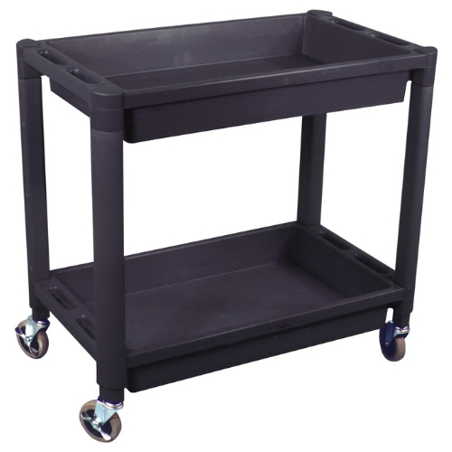 - The Astro Pneumatic 8330 Heavy Duty Plastic 2-Shelf Utility Cart (Black) is a rugged polypropylene parts and tool cart designed for shop, warehouse, or medical use, with nonmarking casters and two deep trays to support up to 300 lb of load.
