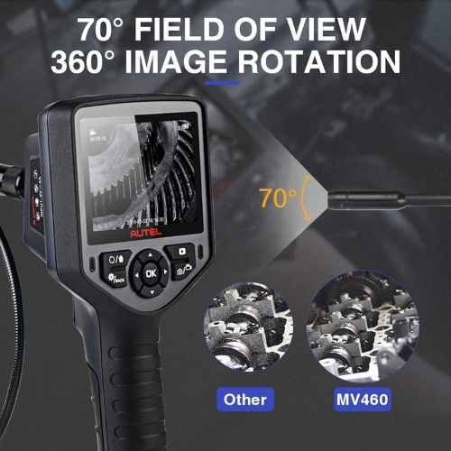 - The Autel MV460 Inspection Camera is a rugged plastics-cased videoscope with a semi-rigid flexible 39.4-inch cable and 70degrees field of view; it records 1920 x 1080 high-definition image and video, has 7x digital zoom, and runs up to 4 hours on its built-in 2600 mAh battery.