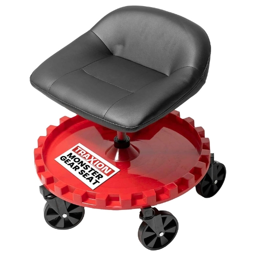 - The Monster Gear Seat can also be referred to as mechanic stool with wheels, rolling shop stool with tool tray, creeper seat with 5 inch casters, padded garage work seat, and Traxion Monster Gear Seat.