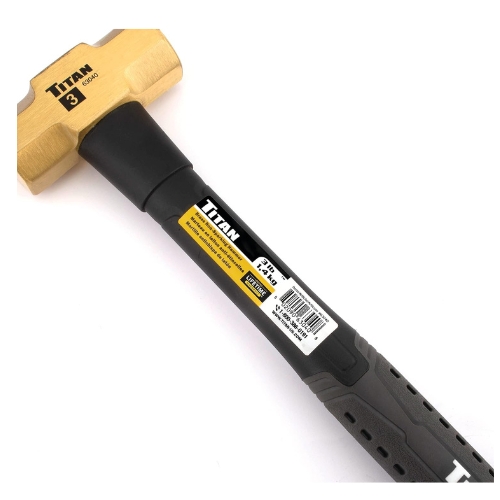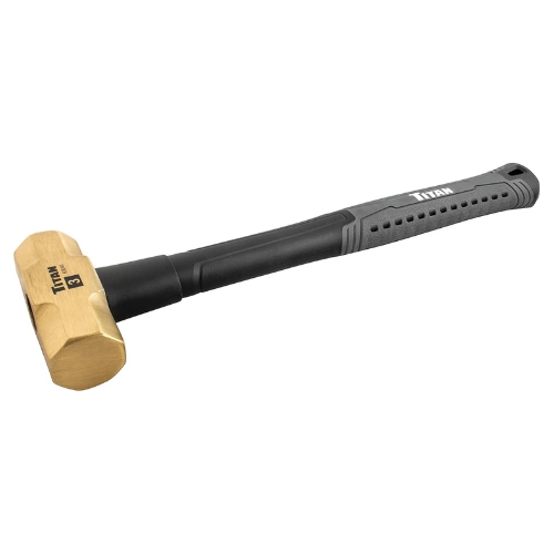 - The Titan 63040 is a 3-pound brass non-sparking hammer designed for safe use in environments where flammable materials are present. Its solid brass head minimizes the risk of sparking, making it ideal for automotive, industrial, and maintenance applications. The fiberglass handle with a textured grip ensures comfort and control during use.