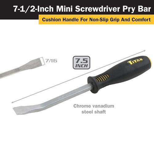 • The Titan 11512 Pry Bar can also be referred to as mini pry tool, angled tip bar, compact lever bar, small steel pry bar, and precision pry bar.