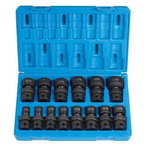 - The Grey Pneumatic 1714U socket set can also be referred to as 1/2" drive universal impact socket set, SAE 12-point socket set, standard length impact socket set, fractional universal socket set, and Grey Pneumatic 14-piece socket set.