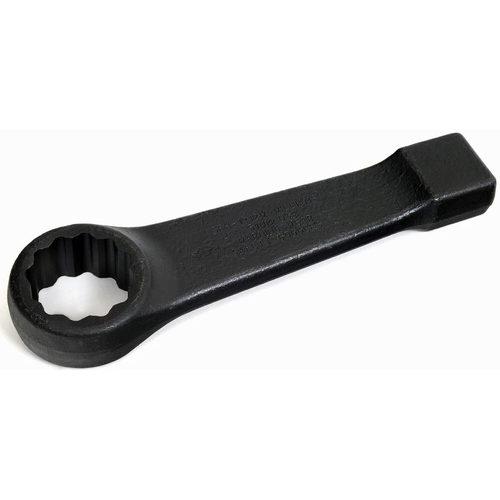 Martin manufactures the 1813 straight pattern striking face box wrench featuring a 2-3/16 inch opening, 12 inch length, and 12-point design. Built for industrial applications, it allows hammer-assisted torque for large fasteners.