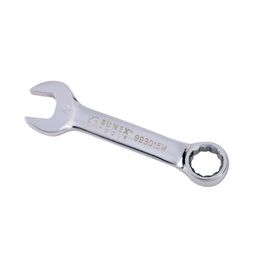• The Sunex 993015M 15mm Stubby Combination Wrench can also be referred to as a stubby wrench, compact wrench, 15mm combination wrench, and Sunex wrench.