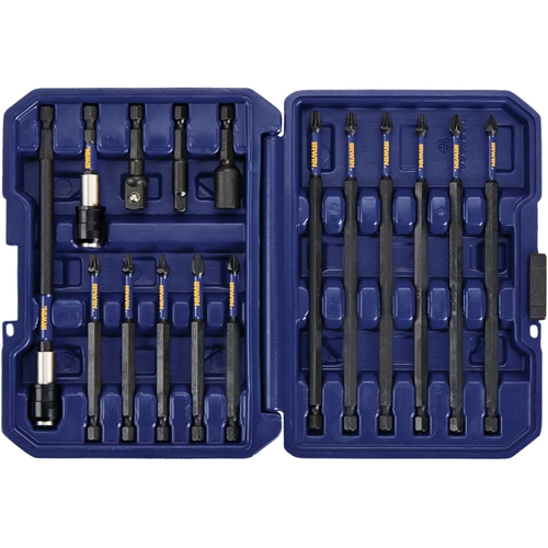 - The IRWIN 16-piece impact screwdriving bit set is built for professionals and collision centers needing durable, high-performance bits. Crafted from cold-forged, high-grade steel with a black oxide finish, this set resists corrosion and is engineered to withstand the high torque of impact drivers.