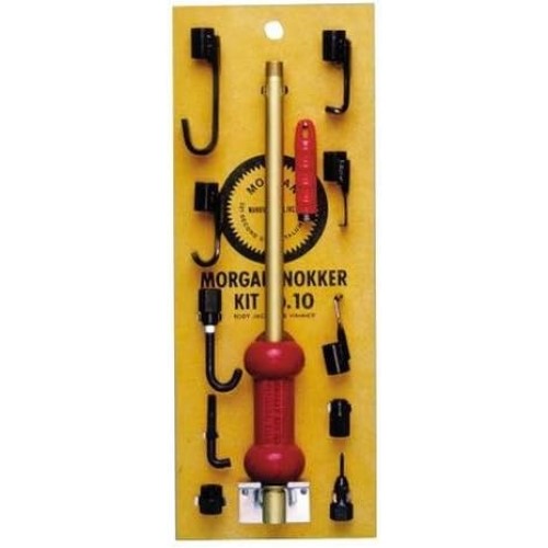 - The Morgan Manufacturing No. 10 Nokker Kit Mounted on Board is a versatile and popular tool for auto body repair. It includes a 9-pound slide hammer and 11 attachments, making it suitable for a variety of tasks. The attachments include a reversed hook, round hook set, Mo-clamp 3100 series hook adapter, locking pliers puller, and more. The kit comes mounted on a wooden board for easy storage and organization.