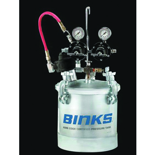 - The Binks 83C-210Heavy Duty Pressure Tank is designed for professional spray applications requiring consistent fluid delivery. Built with a 2.7 gallon ASME-code tank and a single regulation system, this unit provides reliable performance at pressures up to 80 psi. Ideal for collision centers, industrial coating, and auto refinishing environments where durability and precision are essential.