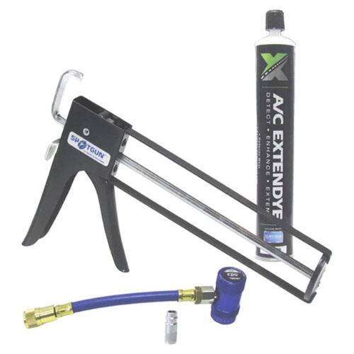 - The Spotgun Injection Kit can also be referred to as A/C dye injection kit, R-1234yf dye injector, Spotgun ExtenDye kit, air conditioning UV dye kit, and cooling system leak detection dye injector.