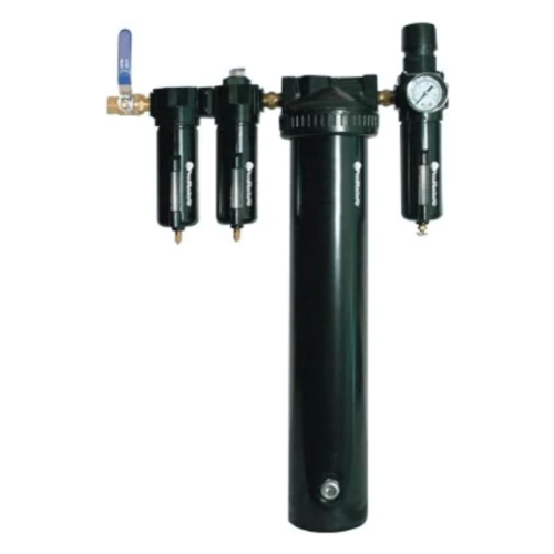 - Filtration Stages: Five (40-micron filter, .01-micron coalescing, desiccant dryer, 3-micron filter, regulator)