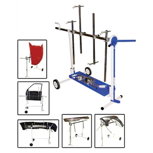 - Universal mounting accommodates doors, hoods, fenders, bumpers, and panels for repair and refinishing.