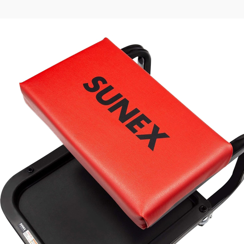 - Sunex 8507 is a rolling creeper seat for shop and garage work. It keeps you low to the job while providing parts storage in an integrated tray and smooth mobility on casters. Cushioned red vinyl and a powder coated black frame support durable, easy-clean use.