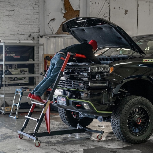 Traxion designs professional automotive shop gear including creepers, stools, and access equipment for safer, more efficient service work.