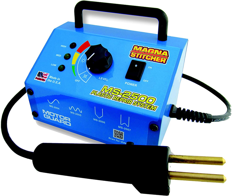 • The Motor Guard MS-2500 Magna-Stitcher Plastic Repair System is a powerful and versatile tool that can be used to repair a wide variety of plastic parts, including bumpers, fascias, spoilers, and headlamp assemblies. The system uses a unique process to weld stainless steel stakes into the surface of the plastic, creating a permanent repair that is stronger than the original part. The MS-2500 is easy to use and comes with a variety of stakes to accommodate different types of repairs. It is the perfect tool for anyone who needs to repair plastic parts on their vehicle or boat.