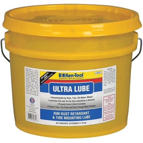 • Ken-Tool Ultra Lubricant is a high-performance tire mounting compound designed to reduce friction and ensure easy installation of tires on rims. Suitable for professional tire shops and commercial garages, this 25 lb bucket provides excellent coverage and long-lasting lubrication without causing rim slippage or tire damage.