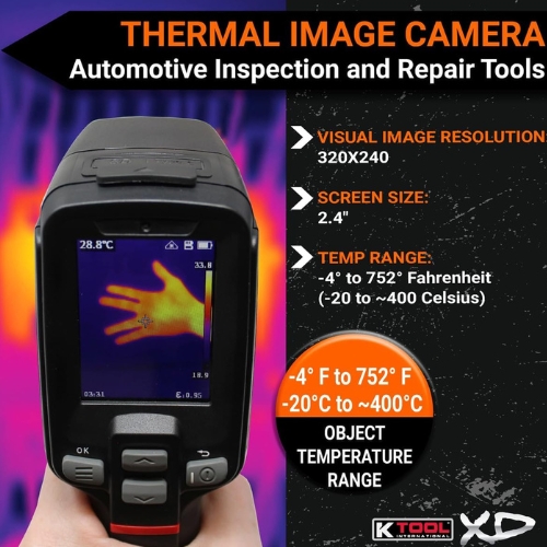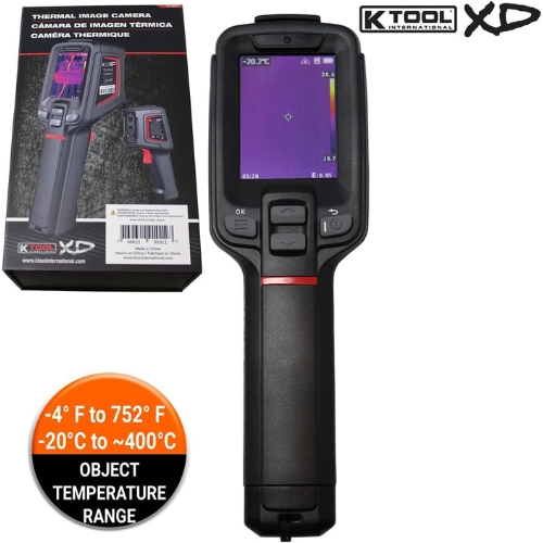 - K-Tool International XD275 thermal image camera is a handheld diagnostic imager for automotive, industrial, HVAC, and home inspection work. It pairs a 2.4 inch color LCD with a 120 x 90 infrared sensor and a -4 to 752 F temperature range, plus six color palettes and 25 Hz refresh. This is a standalone tool, not a replacement part.