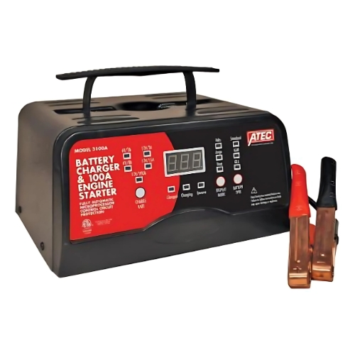 - The Associated 3100A can also be referred to as ATEC 3100A charger, 6/12V 15/2A battery charger with crank assist, steel automatic battery charger, portable starter charger 100A, and battery start/charge combo unit.