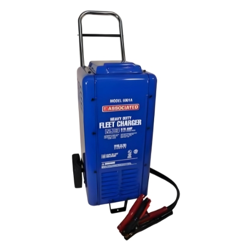 - The Associated 6001A may also be called fleet charger model 6001A, steel wheeled automotive battery charger, 6/12 volt high-output charger, crank assist battery charger, and Associated Equipment heavy-duty mobile charger.