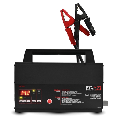 - The Schumacher INC100 is a 4-in-1 automotive power supply and battery charger that provides stable voltage for ECM/ECU reprogramming, battery maintenance, boost charging, and diagnostic work. It outputs up to 70 A continuous, with peak capability of 100 A.