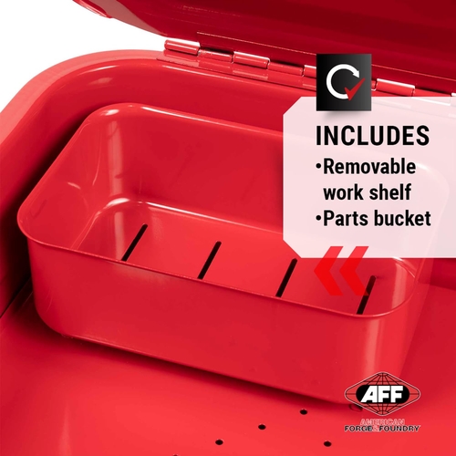 American Forge & Foundry manufactures the 31200B Parts Washer for part and component cleaning in repair shops and maintenance facilities. It is engineered with a high flow pump, safety features, and durable steel construction to handle regular shop use.