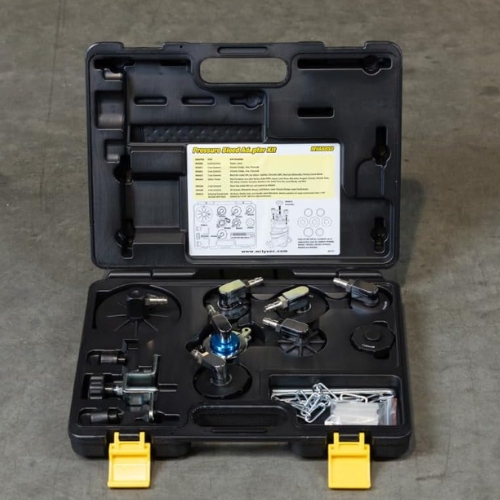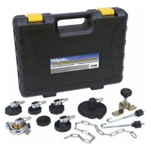 Mityvac designs professional brake and clutch bleeding tools and accessories. The MVA6850 kit provides a comprehensive set of master cylinder adapters and quick change connections to support reliable pressure bleeding across domestic and import applications.