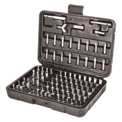 - The Titan 16100 Security Bit Set is a comprehensive 100-piece collection designed to tackle a wide range of fastening applications. This set includes an assortment of standard and tamper-resistant bits, making it ideal for professionals and DIY enthusiasts working on automotive, electronic, and household projects. All bits are organized in a durable blow molded storage case for easy transport and organization.