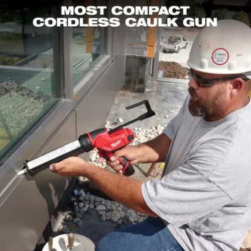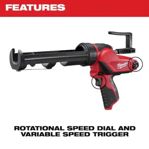 - Milwaukee 2441-20 is an M12 caulk and adhesive gun for controlled dispensing of 10 oz cartridges. It provides up to 400 lbs of pushing force and uses a variable speed trigger with a max-speed dial for consistent bead control. This is a standalone tool only, not a replacement part.