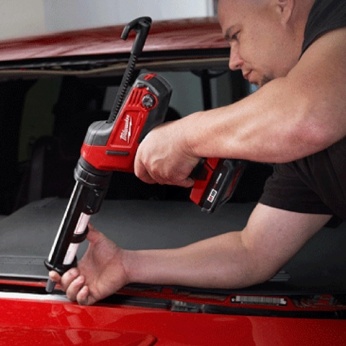 - The Milwaukee 2641-20 M18 cordless 10 ounce caulk and adhesive gun delivers high dispensing force and precise flow control for professional sealant and adhesive applications; this bare tool operates on the M18 18V platform and does not include a battery or charger.