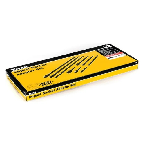 - The Titan 12089 impact socket adapter set is engineered for professionals and DIYers who demand versatility and strength. Made from premium chrome molybdenum steel, this set includes a variety of adapter sizes to extend the functionality of impact drivers and wrenches. With a universal fit design, it allows you to seamlessly convert drive sizes and reach tight spaces with ease. Ideal for automotive repair, construction, and heavy-duty tasks in garages or job sites.