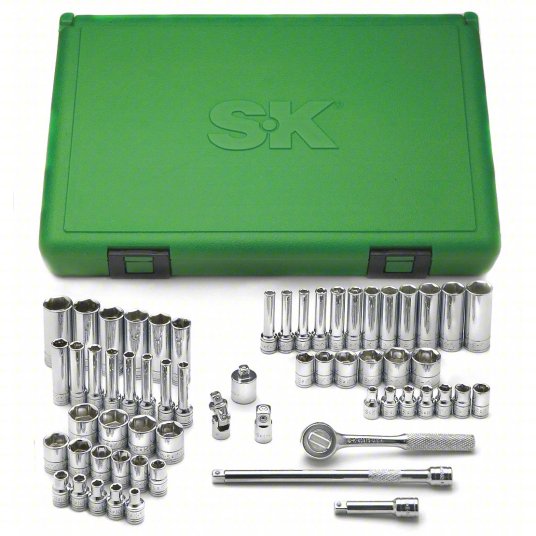 - The SK Tools 91860 Socket Set is a comprehensive 60-piece collection, designed for mechanics and DIY enthusiasts who require precision and durability. Featuring both standard and deep sockets in SAE and metric sizes, this set offers versatility and convenience for a wide range of applications. The 1/4" drive 6-point sockets ensure a tight, secure grip on fasteners, reducing wear and rounding. Built from high-quality steel, this set delivers superior strength and corrosion resistance, making it ideal for automotive, industrial, and general repair tasks.