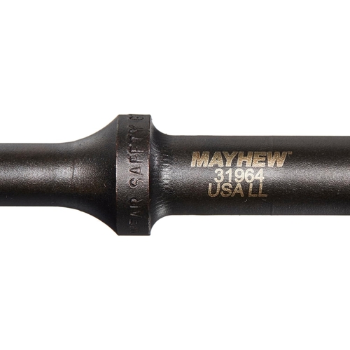 Mayhew manufactures professional air hammer bits for automotive and industrial use; the 31964 concave hammer bit combines a hardened S-2 steel body and rust-resistant black oxide finish with a precise 1 inch concave tip for controlled, high-impact operations.
