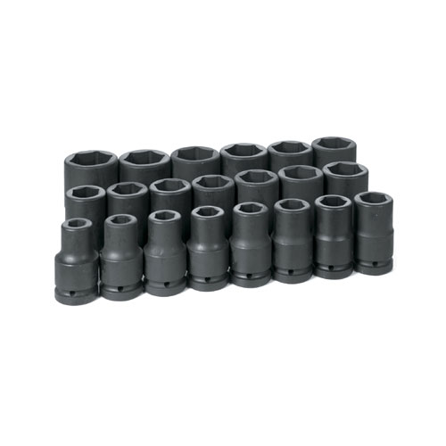 - Dominate heavy-duty applications with the Grey Pneumatic 9021D, a 21-piece impact socket set built for uncompromising strength and performance. This professional-grade kit features deep sockets (3/4" to 2") designed to reach even the most recessed fasteners, ideal for automotive, construction, and industrial work. Its 1" drive handles high torque with ease, making it perfect for lug nuts, suspension components, and other demanding tasks.
