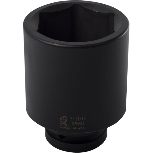 - Sunex 586D is a deep impact socket for heavy duty fastening. It fits 1 inch drive tools and engages 2-11/16 inch SAE fasteners with a 6 point profile. Made from chrome molybdenum steel, it is built for impact use and general service; this is not a replacement part for a specific SKU.