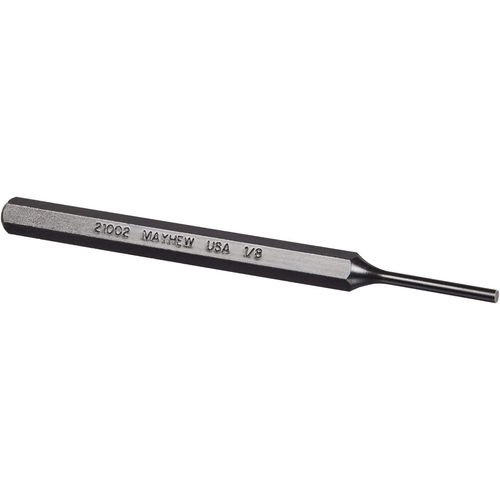 - The Mayhew 21002 pin punch is a hardened-alloy-steelde punch with a black-oxide finish, featuring a 1/8-inch tip and 4-3/4-inch overall length, designed to drive out pins and keys that are already loosened not for initial loosening of seized pins.
