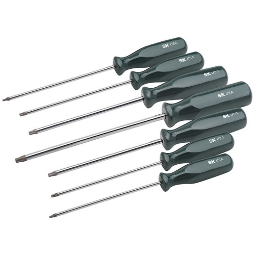 - The SK Tools 86323 SureGrip Torx Screwdriver Set is a 7 piece professional set featuring 6" chrome vanadium shafts and Torx tips from T10 through T40. Designed for automotive and mechanical service, each screwdriver provides controlled torque and secure fastener engagement.