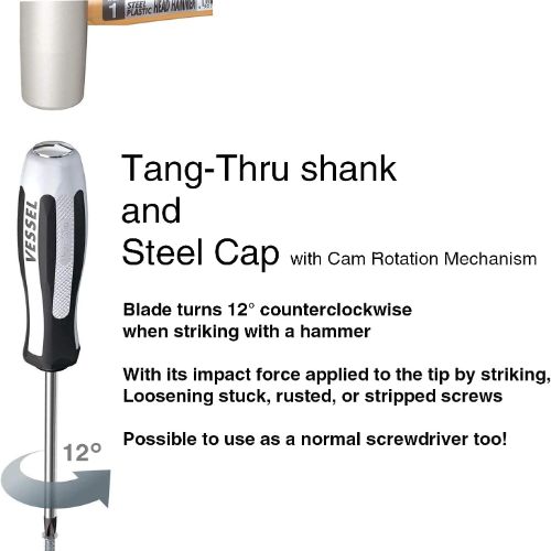 - Cam rotation mechanism turns the driving tip counter-clockwise by 12° when struck, ideal for removing stuck or rusted screws