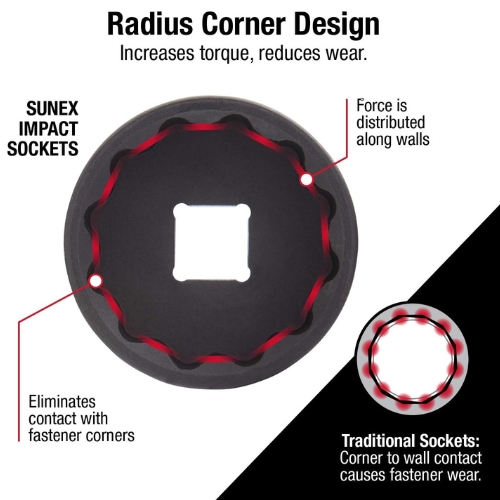 - Radius corner design enhances engagement and reduces rounding on fasteners