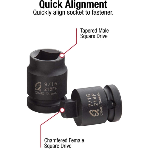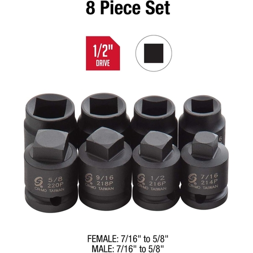 Sunex 2841 Pipe Plug Impact Socket Set, 1/2" Drive, Male and Female, SAE 7/16" to 5/8", 8 Piece