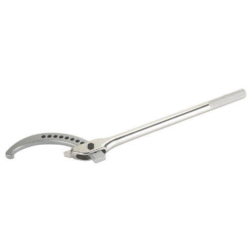The OTC 7309 Adjustable Hook Spanner is built to handle large ringed components by offering a wide gripping range, 11-step adjustment, and strong, drop-forged construction for reliable performance in heavy equipment and industrial maintenance.