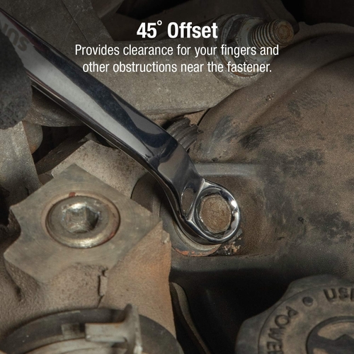 - 45 degree offset box ends improve knuckle clearance and access around obstructions.