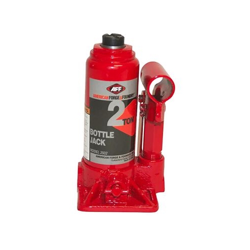 - The American Forge & Foundry 3502 Bottle Jack, Heavy Duty, 2 Ton Capacity, Manual Centered Pump & Ram can also be referred to as AFF 3502 2 Ton bottle jack, AFF manual bottle jack 2-Ton, AFF centered ram jack model 3502, AFF machine hardened saddle jack, American Forge heavy duty bottle jack 3502.