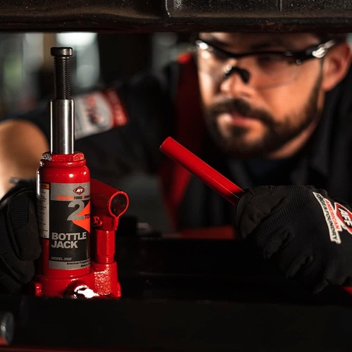 American Forge & Foundry manufactures the 3502 Bottle Jack with centered pump & ram, hardened steel saddle, and reliable hydraulic design to meet the needs of heavy duty lifting in professional and shop settings.