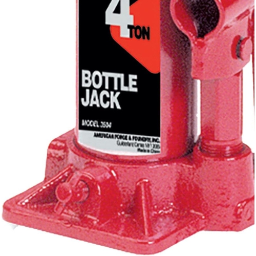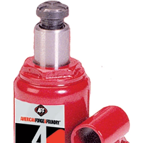 - American Forge & Foundry 3504 Bottle Jack is a manual heavy duty hydraulic jack with centered pump and ram design, machine hardened steel saddle, and built for automotive, industrial, marine, and agricultural applications.